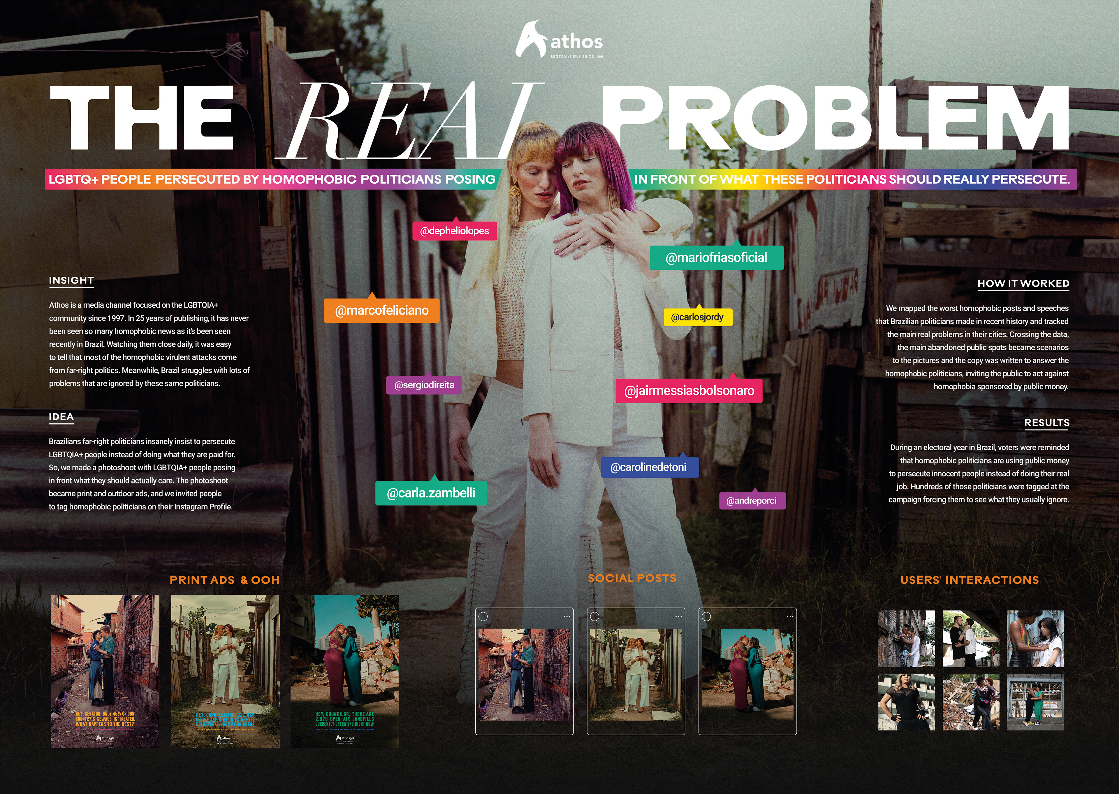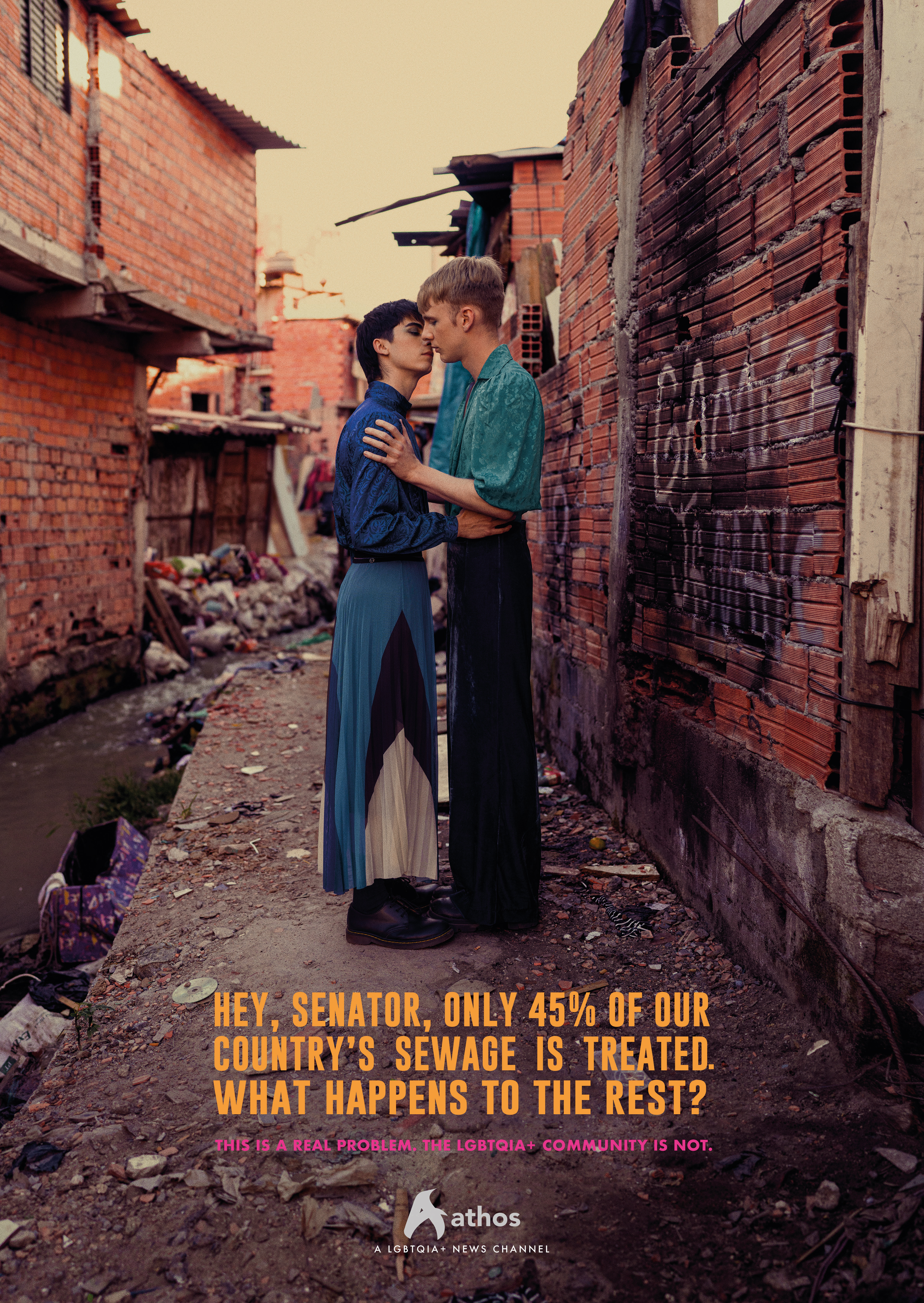 cannes bronze lion 2022 - o projeto tem como proposta chamar atenção dos políticos homofobicos para os reais problemas do brasil, como o descaso com o saneamento, moradia e cuidados com o espaços do brasil. -